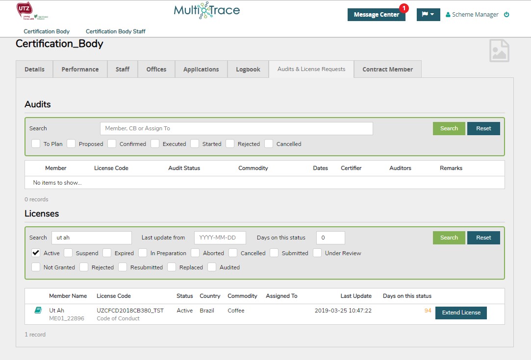 MultiTraceでは、メンバー、CBs、そしてUTZが監査スケジュールをいつでも閲覧できます。さらに、このシステムでは監査プロセスに要している日数ががプロトコルの規定に従っていることを確認するだけでなく、監査が承認済みCBsによってのみ実施可能であることも保証します。